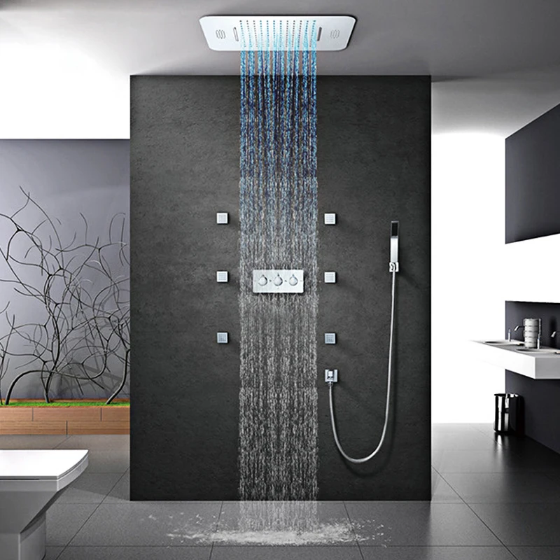 TOP Bluetooth Music LED Shower Head Spa Rainfall Shower Set Big Water Flow Showers Faucet Mixer Massage