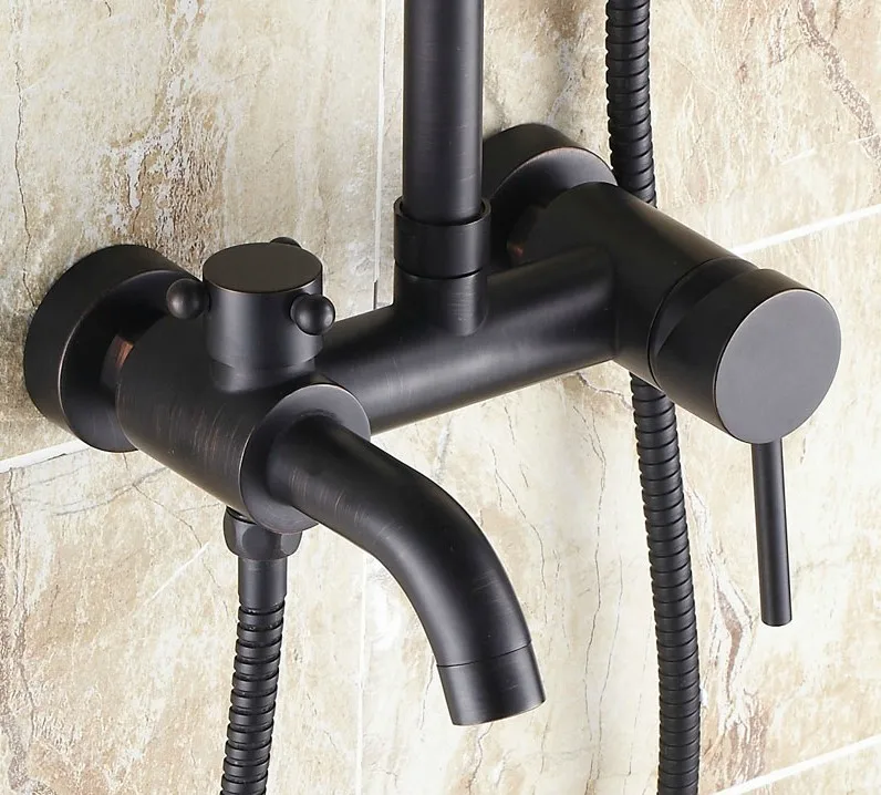 Black Oil Rubbed Brass Single Handle Bathroom 8 Inch Round Rain Shower Faucet Set Bath Tub Mixer Ta