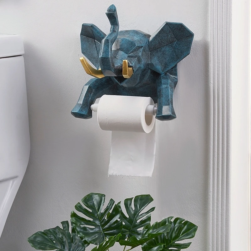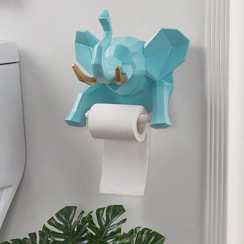 HOT SALE Resin Cute Elephant Creative Toilet Kitchen Paper Towel Rack Bathroom Toilet Roll Paper Rack Wall H