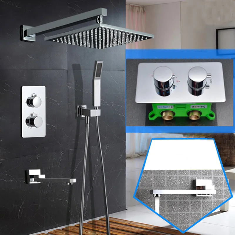 wall Mounted 10 inch Ultra Thin Shower Head Thermostatic Shower Set 3-Way Bathroom Concealed Instal