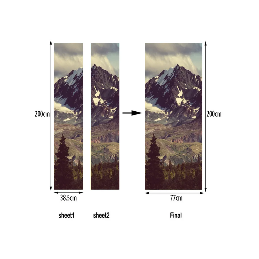 BEST QUALITY 3D Door Stickers Mountain Forest Scenery Room Bathroom Door Removable Vinyl Stickers Decorative Pos