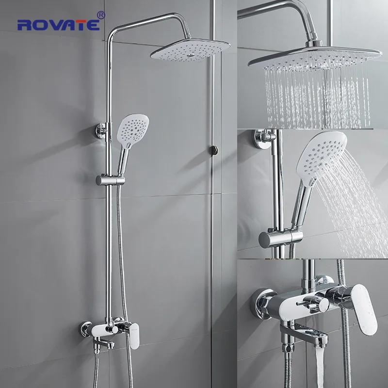 BEST QUALITY ROVATE Bathroom Shower Set with 230*255(mm) Rainfall Shower Head Shower Faucet Set with Adjustable