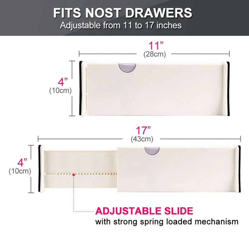 BEST QUALITY Drawer Dividers Organizer 5 PacksAdjustable Separators 4 Inch High Expandable From 11-17 Inch for B