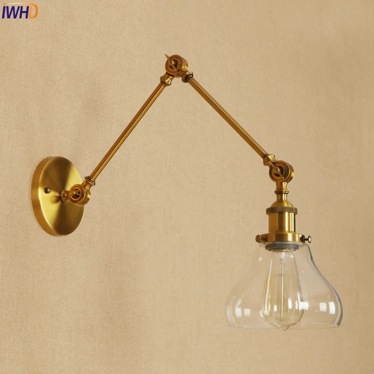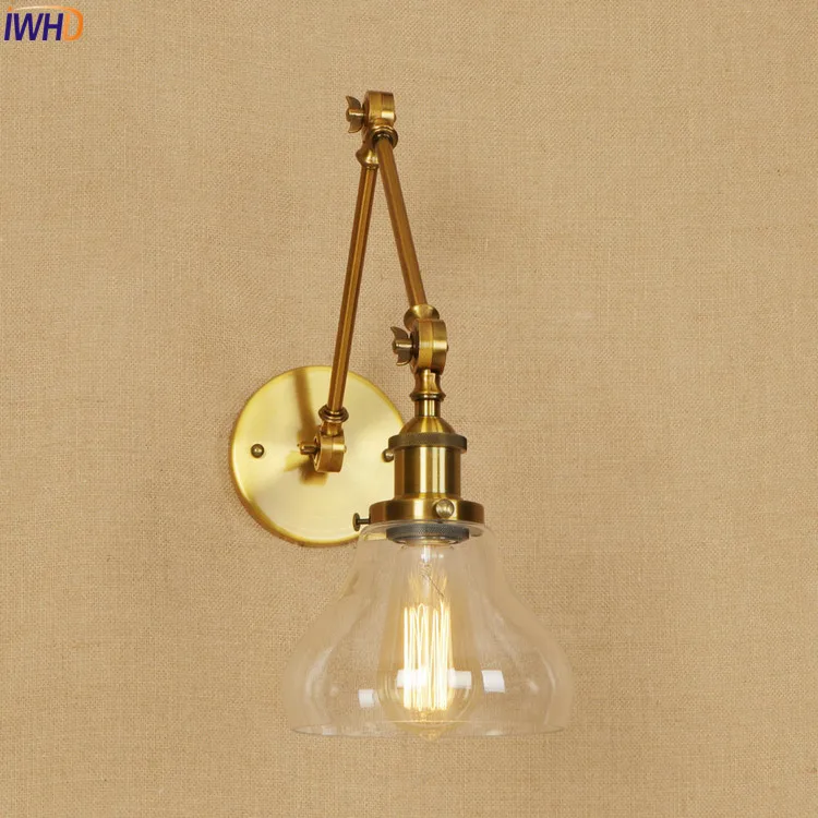 IWHD Golden Long Arm Wall Lights Fixtures Glass Bedroom Vintage Wall Lamp LED Edison Loft Style Ind